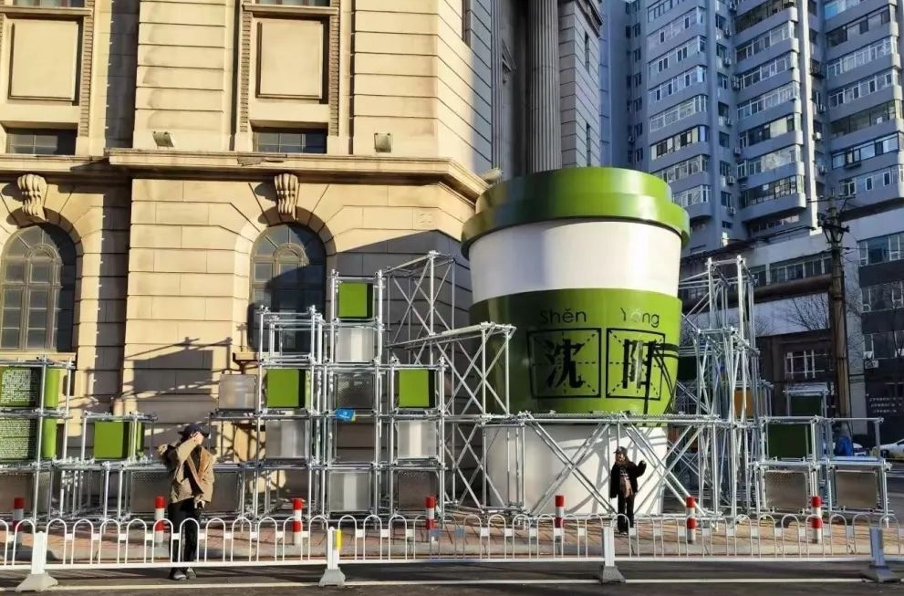 图为沈阳街头的巨大咖啡杯。(沈阳市委宣传部供图)