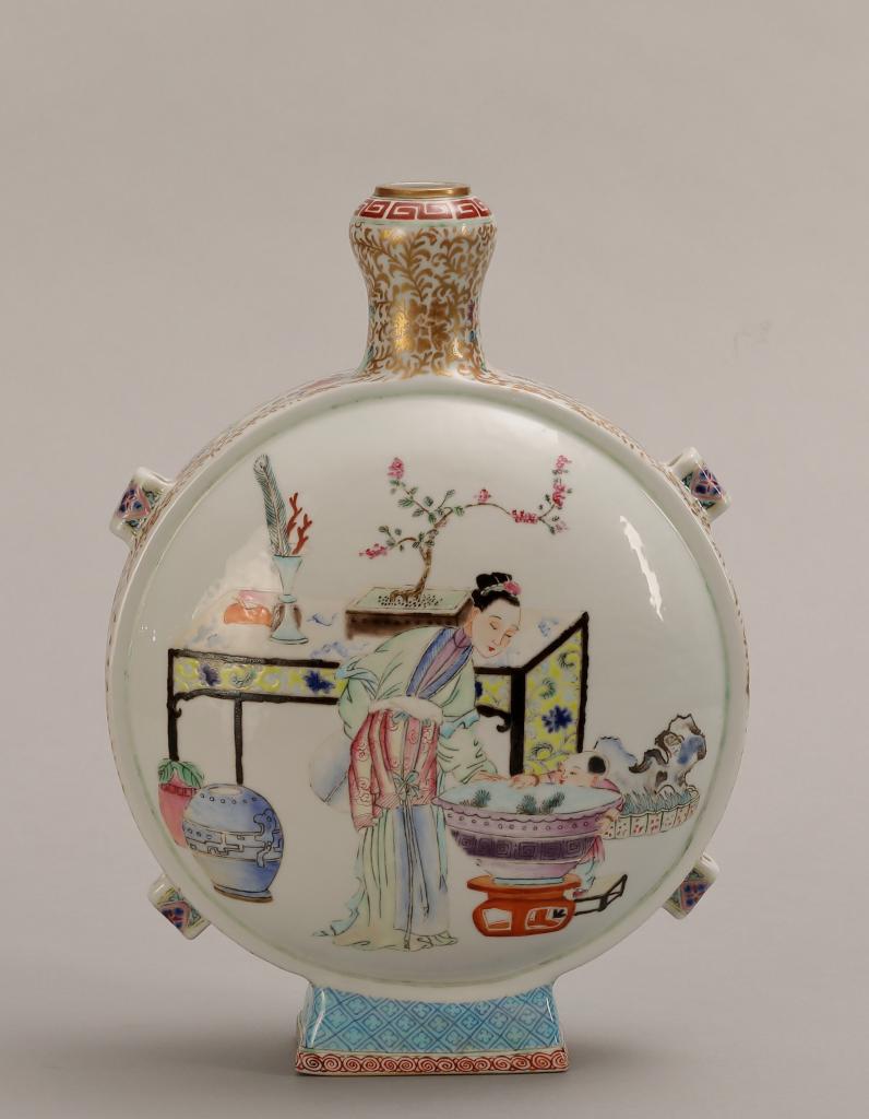 展出的清雍正粉彩婴戏图蒜头扁瓶。沈阳故宫博物院供图