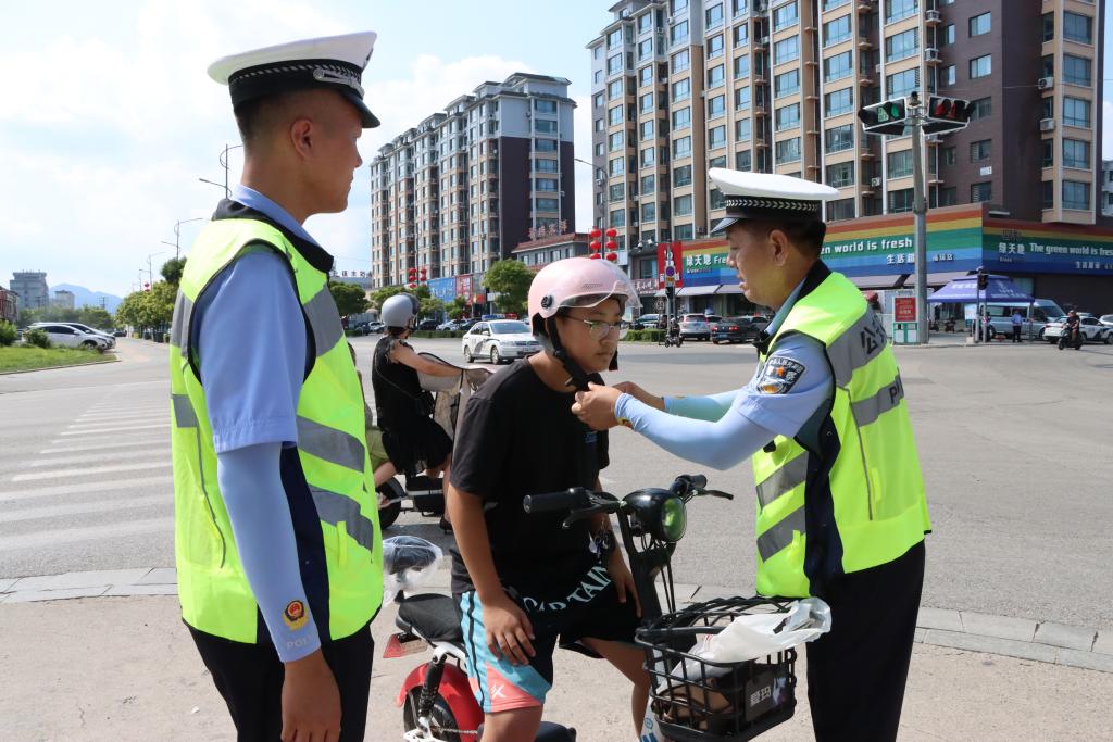 开学前夕,由治安大队牵头,属地派出所配合,对45所中小学再次进行梳理,对一键报警、视频监控、防护装备进行测试检查,对学校周边网吧、旅店等重点场所进行细致排查,对存在的8处安全隐患现场进行整改。北镇市公安局机关每日增派警力,与交警大队共同开展头盔劝导工作,向学生家长发放并签订《安全承诺书》3200余份,劝导家长、学生780余人次,全面提升头盔佩戴率。