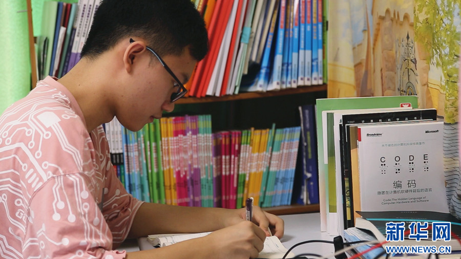 图为王鹤鸣利用暑假时间进行预习。新华网发