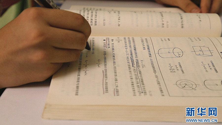 图为王鹤鸣利用暑假时间进行预习。新华网刘舒摄