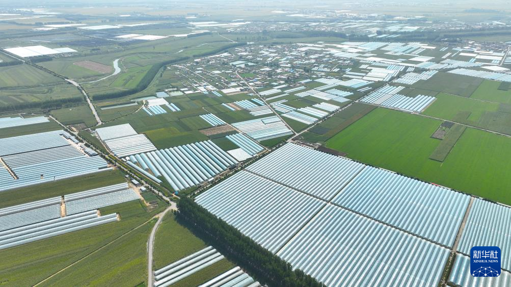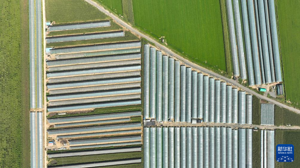 9月7日拍摄的灯塔市柳条寨镇辽峰葡萄核心产区的葡萄大棚(无人机照片)。新华社记者杨青摄