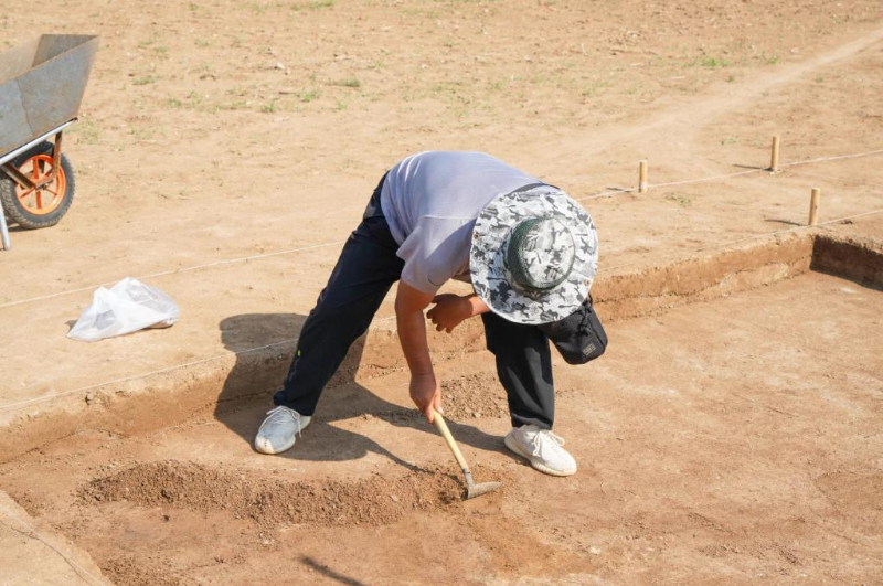 据介绍,刺槐山遗址,位于辽宁省朝阳市朝阳县乌兰河硕乡八大孟克村西,地处牤牛河与大凌河交汇的三角地带,是一处红山文化聚落址。遗址经由大凌河中游(朝阳)地区红山文化考古调查发现,范围约12万平方米。本年度,考古人员将通过考古发掘,揭示遗迹分布和属性,了解聚落布局信息。