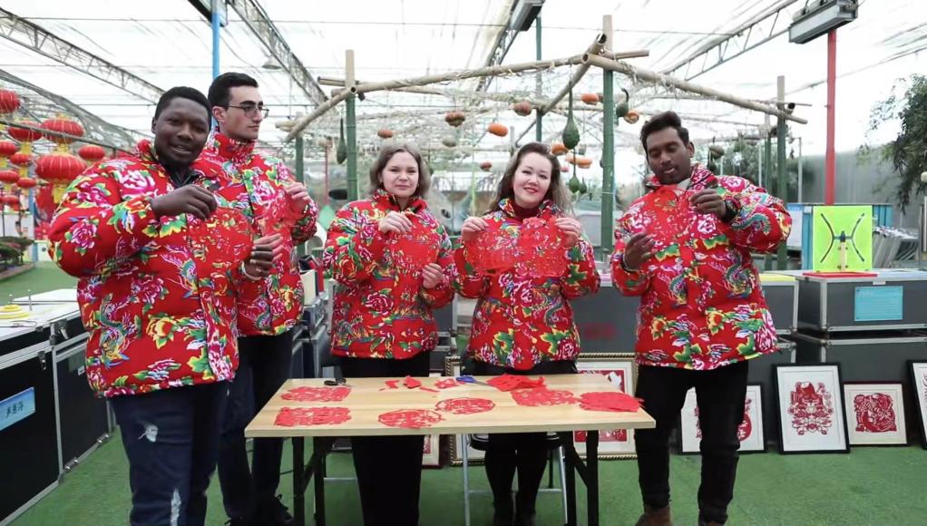 在小南村七彩南山景区,留学生们体验了写福字、磨豆浆、剪窗花等传统新年民俗活动,逛年货大集,欣赏竞相开放的杜鹃花,与蝴蝶、鹦鹉、小兔子等可爱动物零距离接触。留学生们擂起祝福的大鼓,送出“福气满满、财源滚滚”的新春祝福。