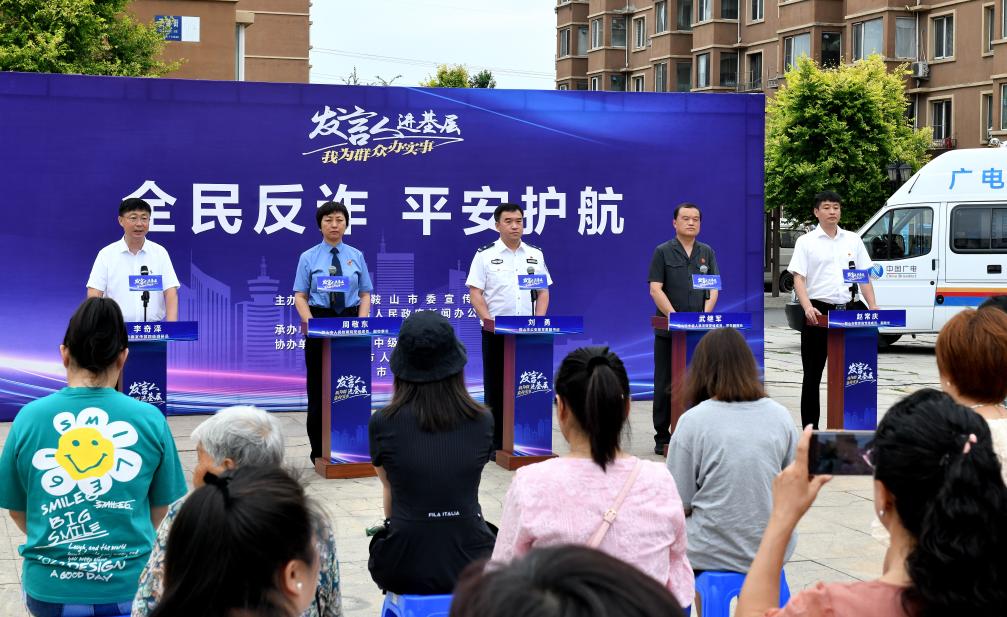 新华网沈阳7月14日电(记者李宇佳)13日,鞍山市委宣传部(市政府新闻办)在鞍山市千山区汤岗子街道泉兴社区召开“全民反诈 平安护航”新闻发布活动,鞍山市公安局、市人民检察院、市中级人民法院相关负责人走进社区,向百姓介绍鞍山市打击治理电信网络诈骗犯罪工作的进展,助力全民防范电信网络诈骗。