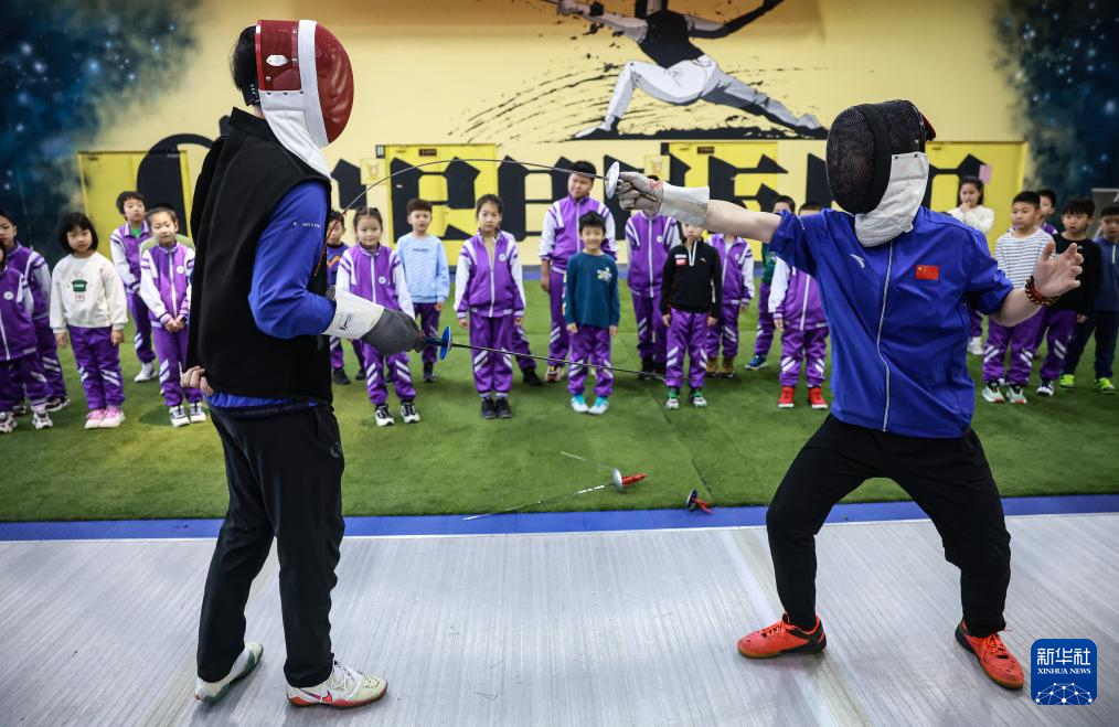 1月15日,教练向学生们示范击剑。新华社记者 杨青 摄pagebreak