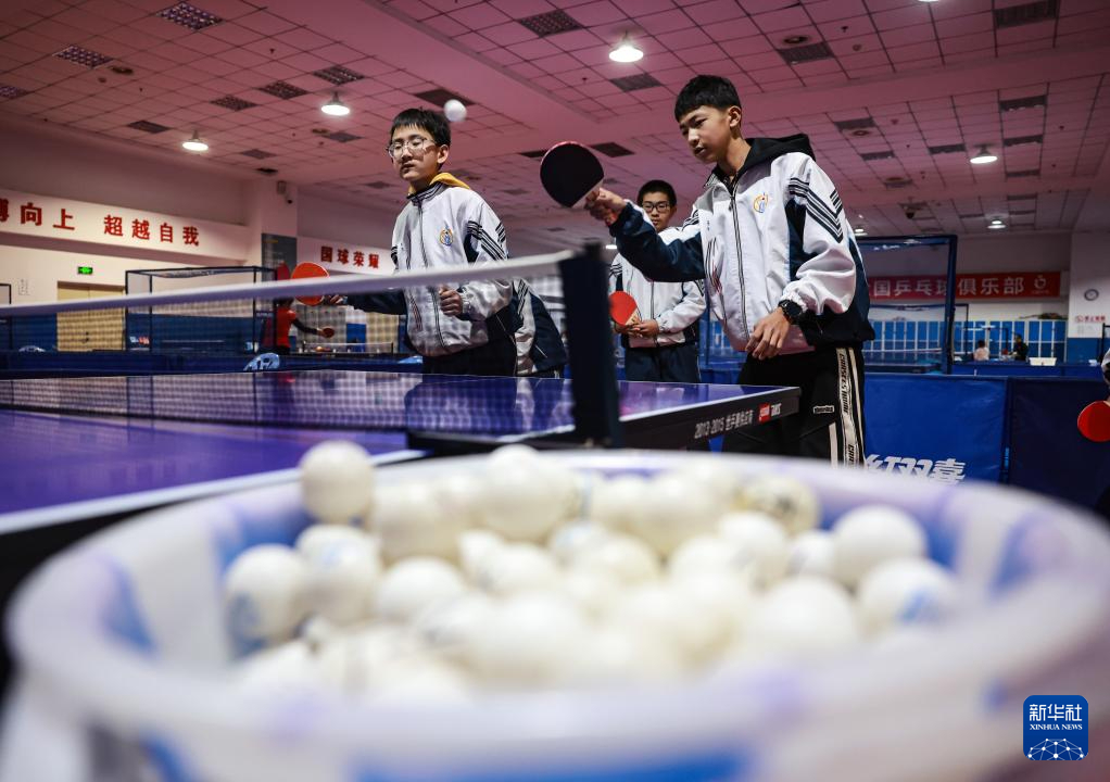 1月15日,学生们练习乒乓球。新华社记者 杨青 摄pagebreak