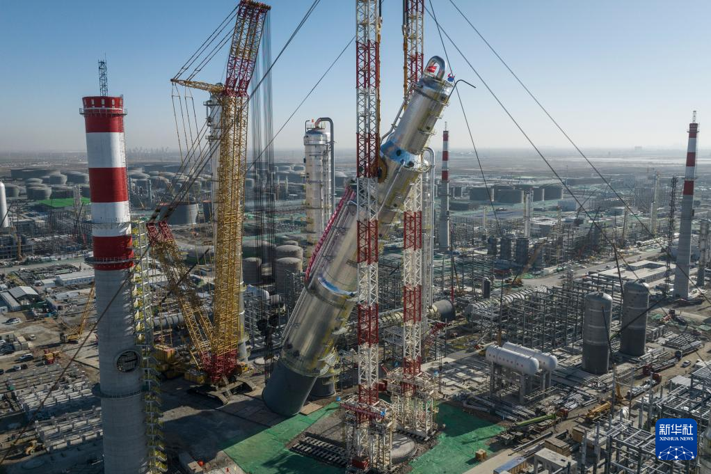 当日,国家支持东北振兴重点项目、沙特阿美公司与中国企业共同投资837亿元的华锦阿美精细化工及原料工程项目取得重要进展。项目最大单体设备、重4366吨的芳烃联合装置抽余液塔吊装成功。目前,项目已完成总进度近60%。