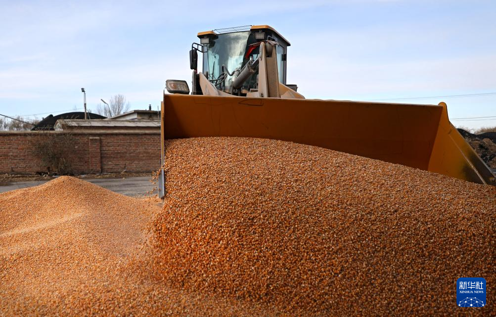 11月16日,工人驾驶铲车在辽宁省台安县桓洞镇的一家粮库内卸载玉米。新华社记者 姚剑锋 摄pagebreak