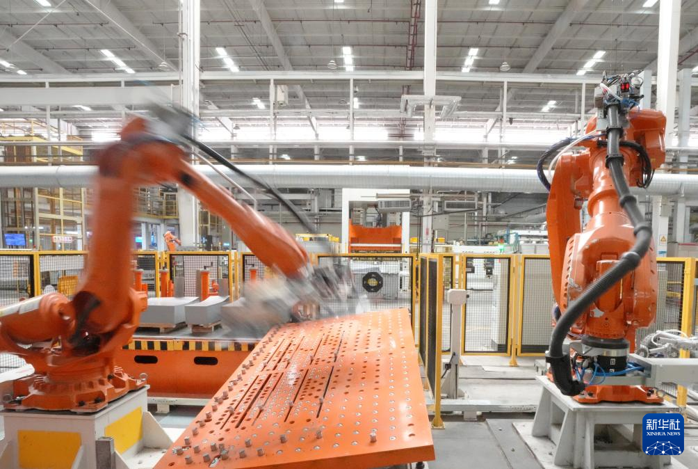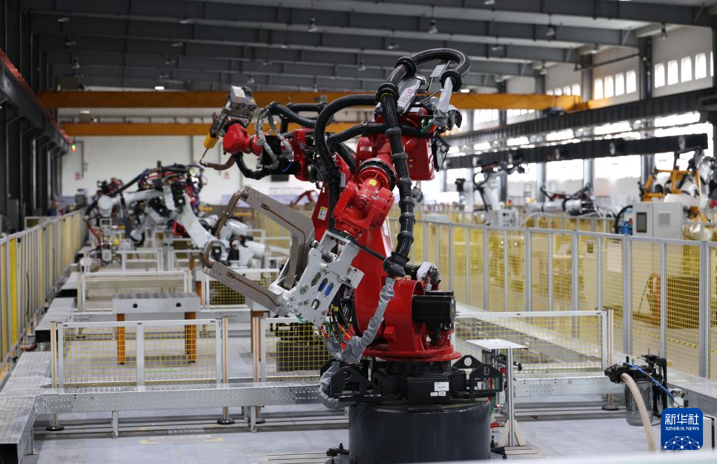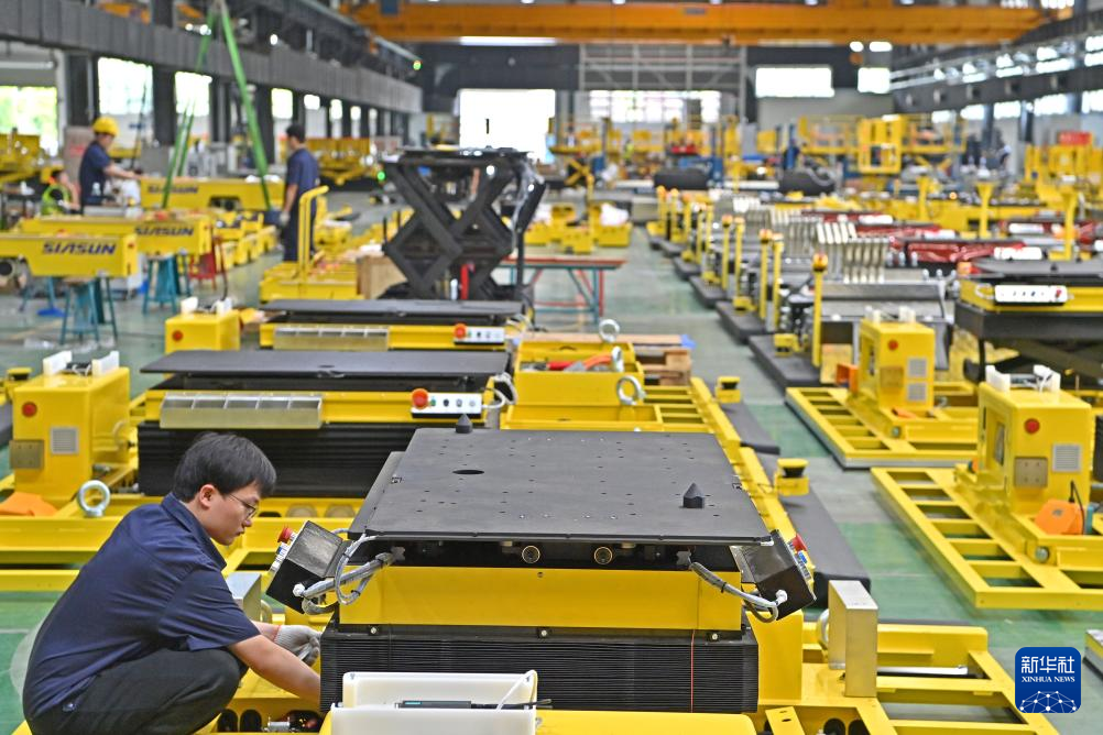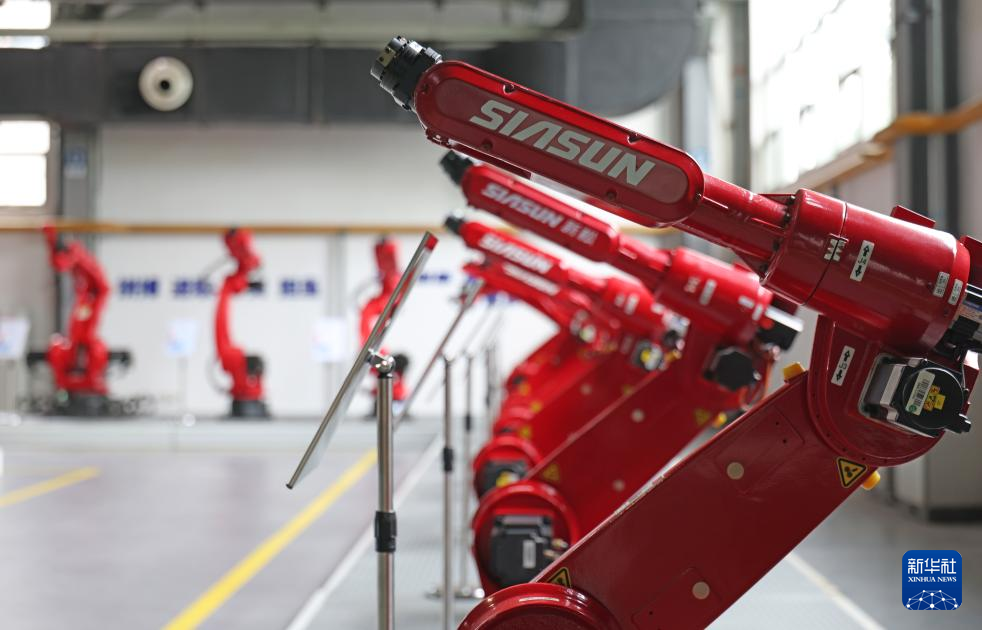 这是8月27日在新松机器人自动化股份有限公司车间拍摄的工业机器人。