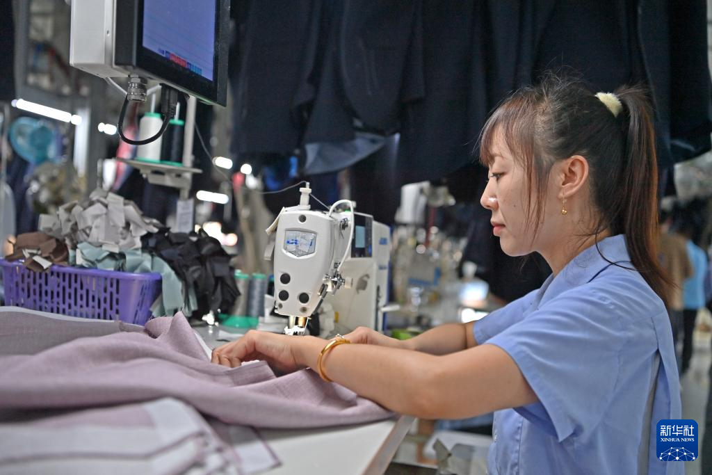 8月28日,工人在辽宁省大连市大杨集团的服装生产车间工作。