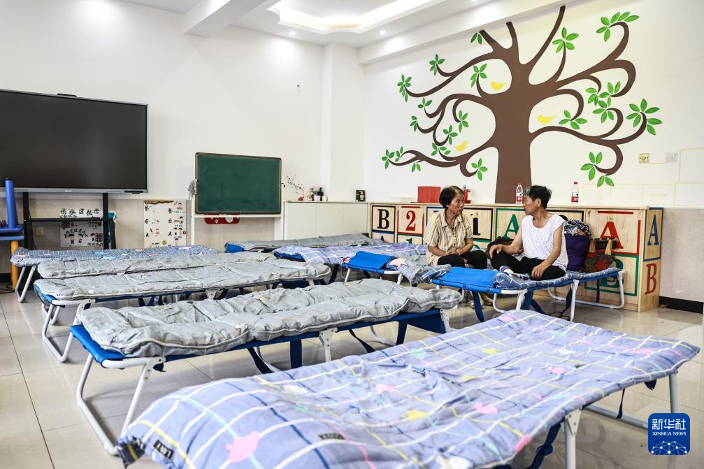 在双井子镇中心小学,被转移的村民正在休息。新华社记者潘昱龙 摄