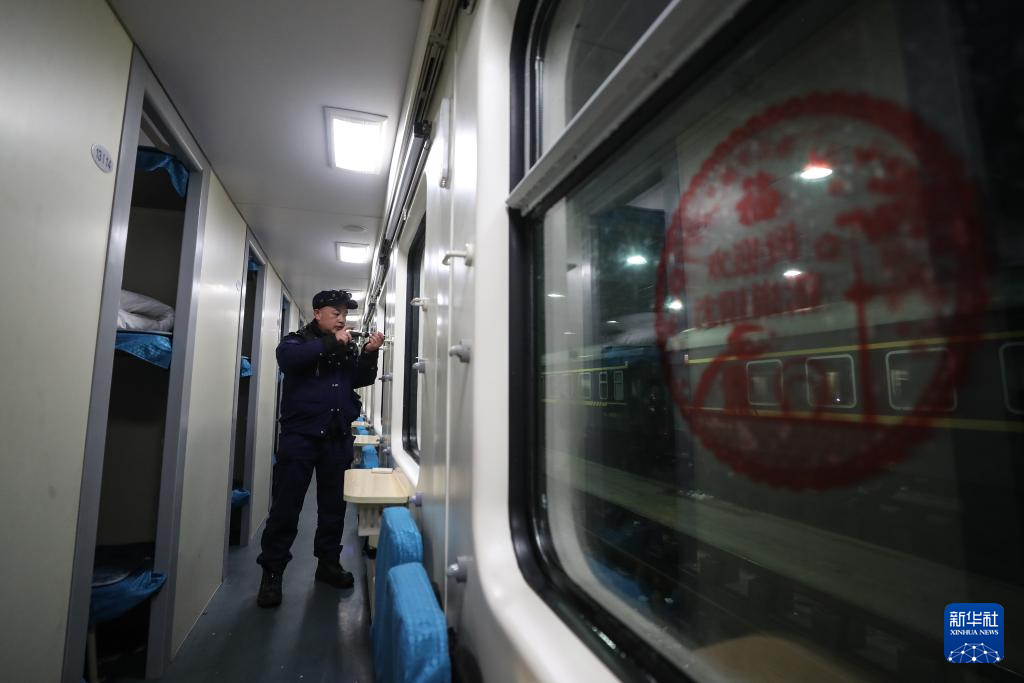 2月5日,田鹤在一列普速列车内进行检修工作。新华社记者 潘昱龙 摄pagebreak