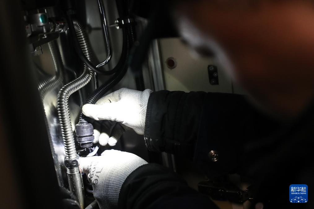 2月4日,田鹤整理头灯,准备前往整备库进行检修工作。新华社记者 潘昱龙 摄pagebreak
