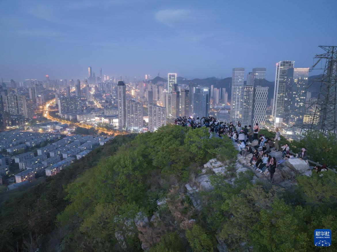 市民游客在山顶欣赏城市夜景。新华网许志康摄