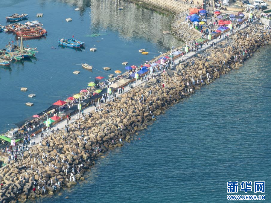 市民游客在渔人码头漫步感受海风。新华网许志康摄