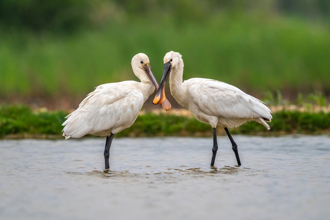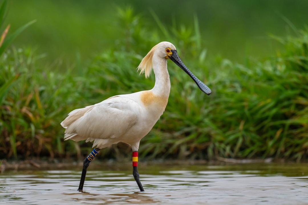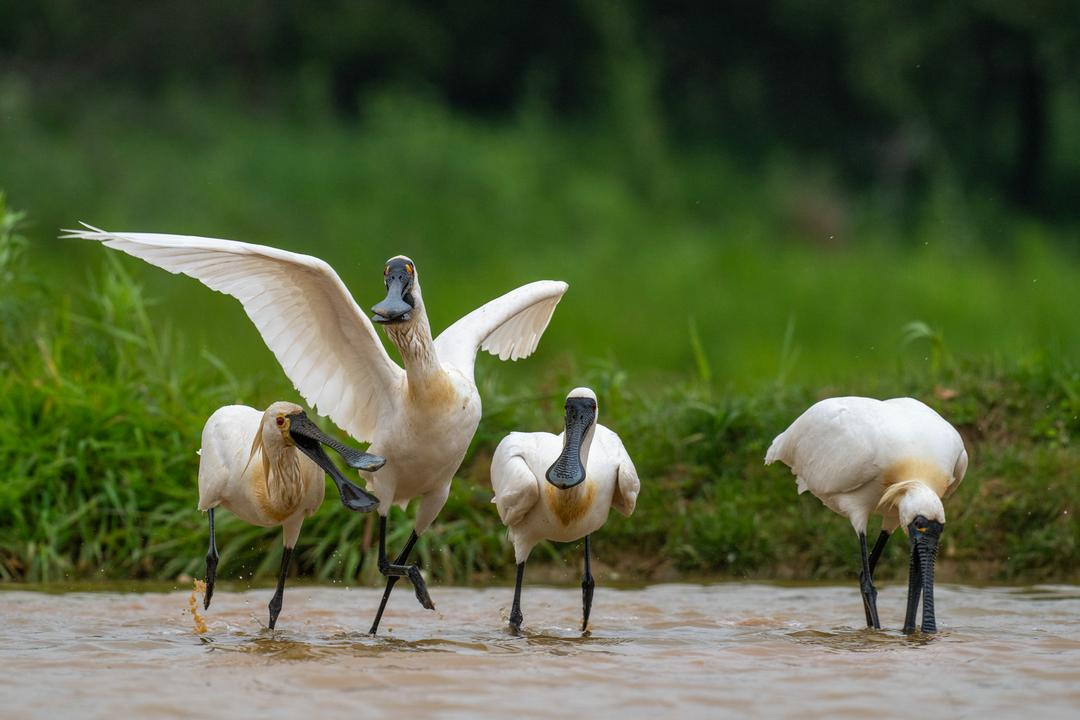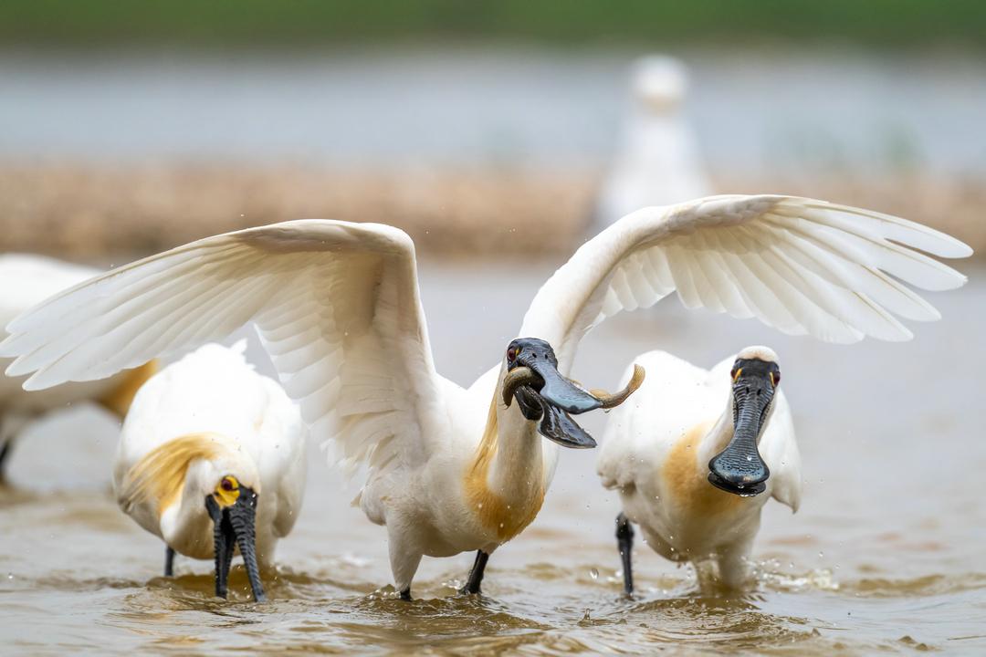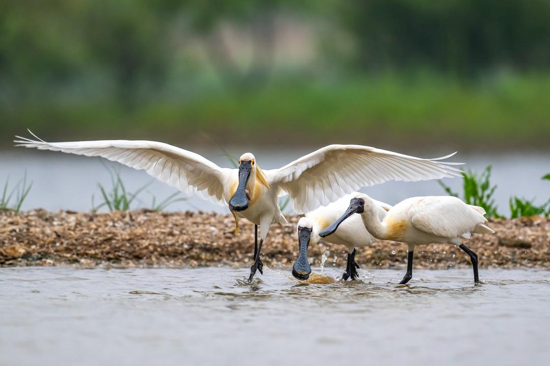 近日,大批黑脸琵鹭在庄河栖息。作为世界濒危鸟类和湿地环境质量指示物种,黑脸琵鹭成为庄河市一张亮丽的“生态名片”。