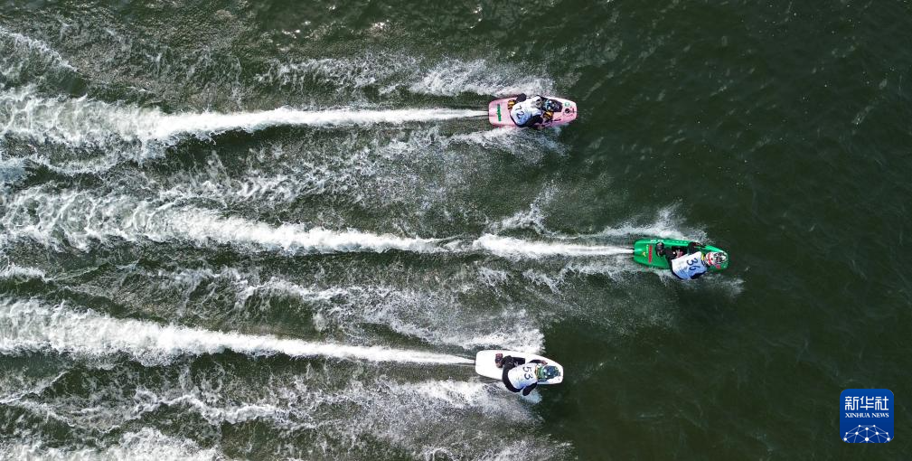 9月16日,参赛选手在比赛中(无人机照片)。新华社记者 陈为 摄
