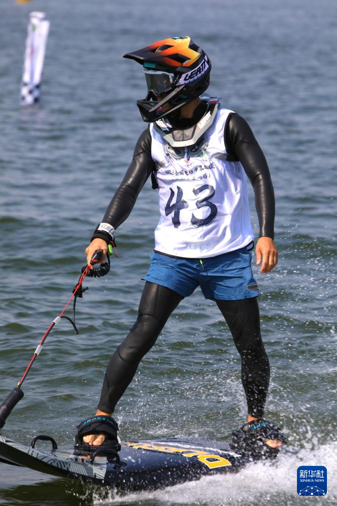 9月16日,赛格动力水上运动俱乐部队选手钟臣君在大众组动力冲浪板障碍回旋赛中。新华社记者 陈为 摄pagebreak