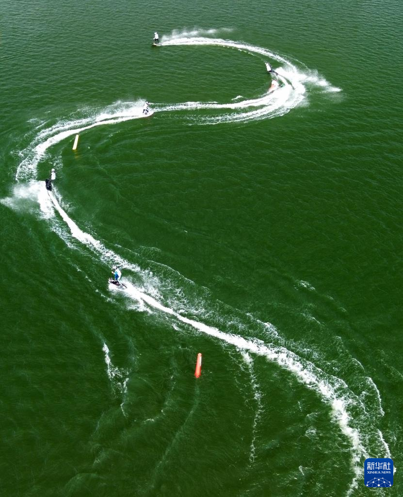 9月16日,参赛选手在比赛中(无人机照片)。新华社记者 陈为 摄pagebreak