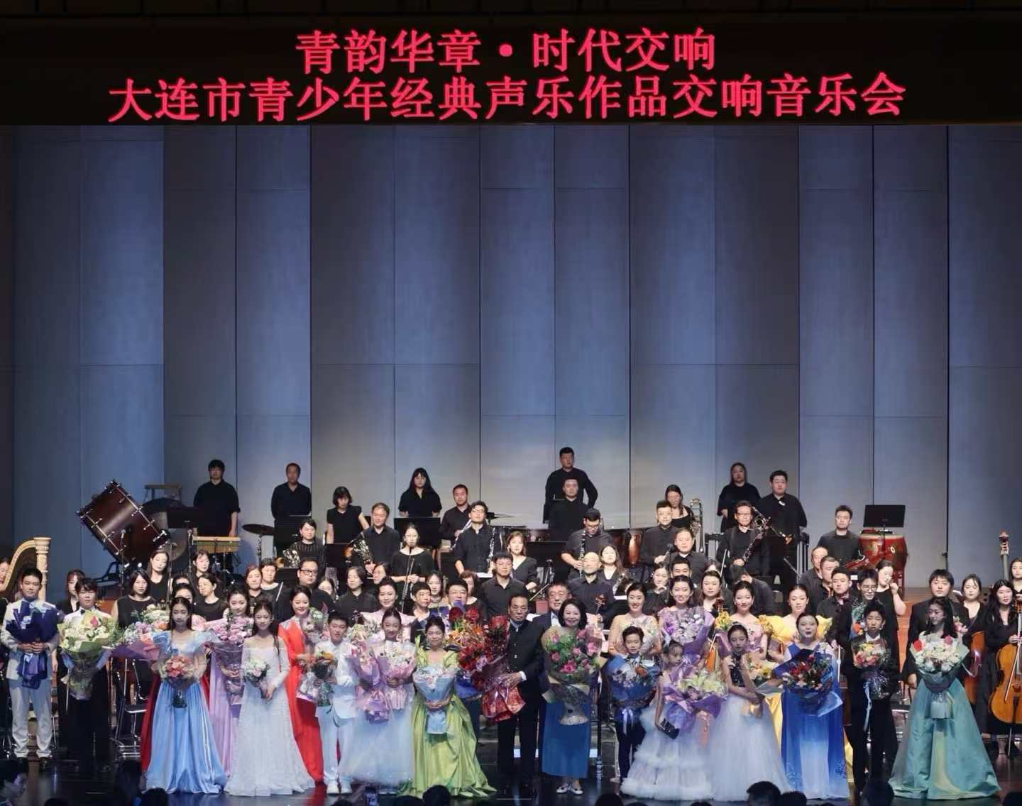 新华网沈阳8月10日电 由大连大学主办的“青韵华章·时代交响”大连市青少年经典声乐作品交响音乐会近日在大连大剧院圆满落幕。本次音乐会以“铭记历史·奋进复兴”为历史背景,在指挥家杜明的执棒下,大连城市国际交响乐团、大连大学交响乐团联袂大连优秀青少年声乐歌者为观众呈现了一场融艺术性、思想性和时代性于一体的音乐盛宴。