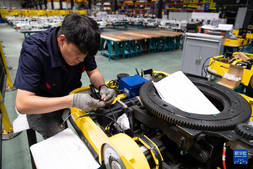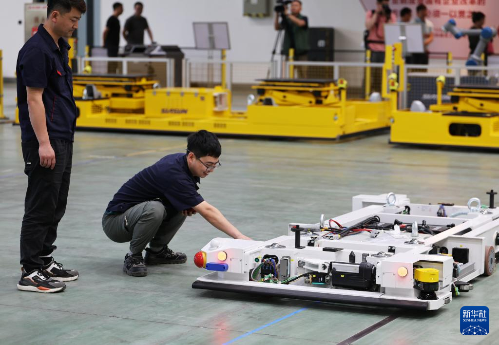 6月12日,在辽宁省沈阳新松机器人自动化股份有限公司,工作人员调试机器设备。新华社记者 李旭伦 摄pagebreak