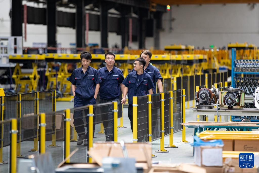 6月12日,辽宁省沈阳新松机器人自动化股份有限公司的工作人员在生产车间内交流。新华社记者 李旭伦 摄pagebreak