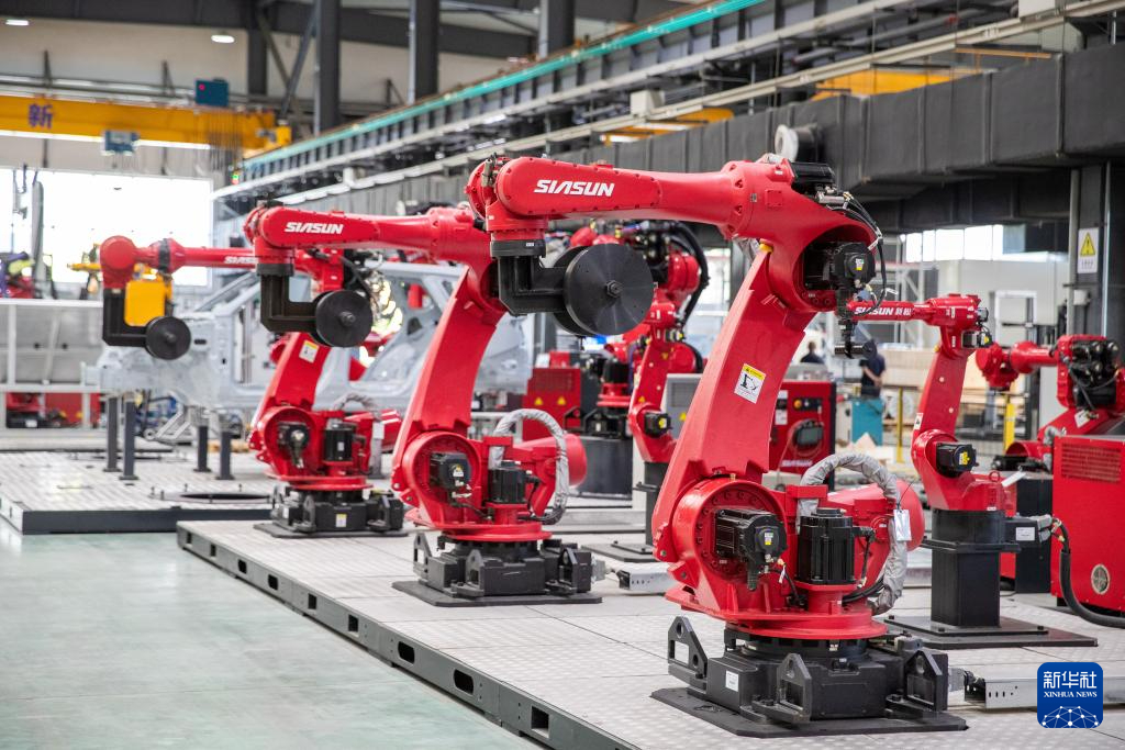这是6月12日在沈阳新松机器人自动化股份有限公司拍摄的生产车间。新华社记者 李钢 摄