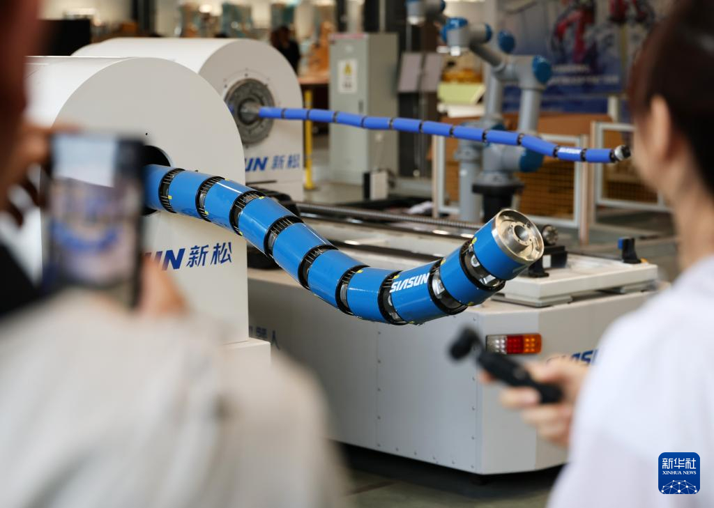 这是6月12日在沈阳新松机器人自动化股份有限公司拍摄的蛇形臂机器人。新华社记者 李钢 摄pagebreak