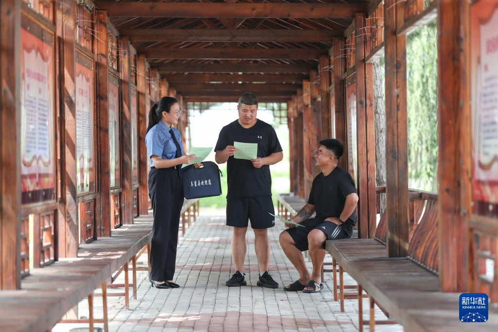 8月7日,辽宁阜新蒙古族自治县人民检察院检察人员在于寺镇官营子村向村民普及法律知识。