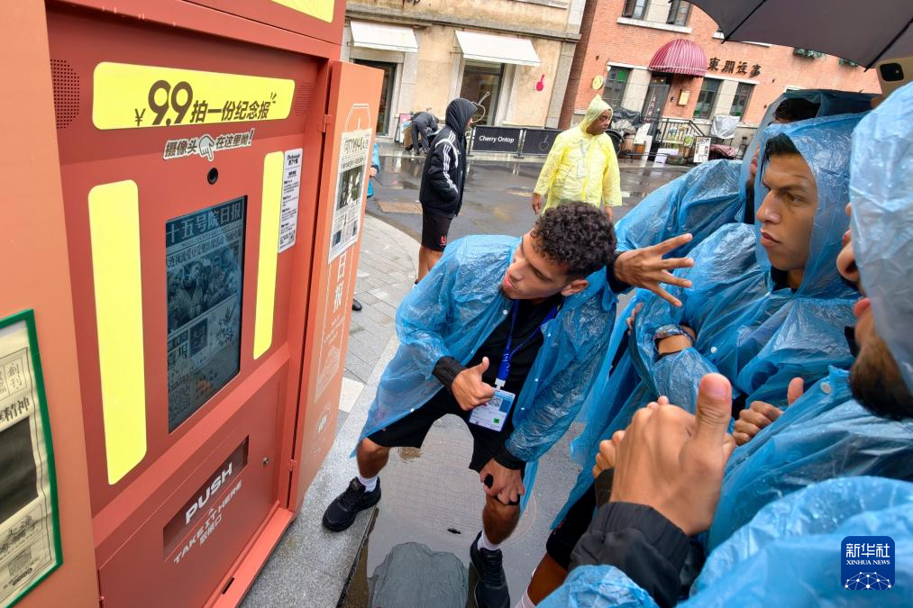 9月23日,摩洛哥乔伊杜卡利大学队球员在大连东关街历史文化街区游玩。当日是2025年国际大体联足球世界杯的休赛日暨“文化日”,参赛球员、教练员、裁判员等来到大连市多个景点,感受大连的城市文化。新华社记者 郑焕松 摄