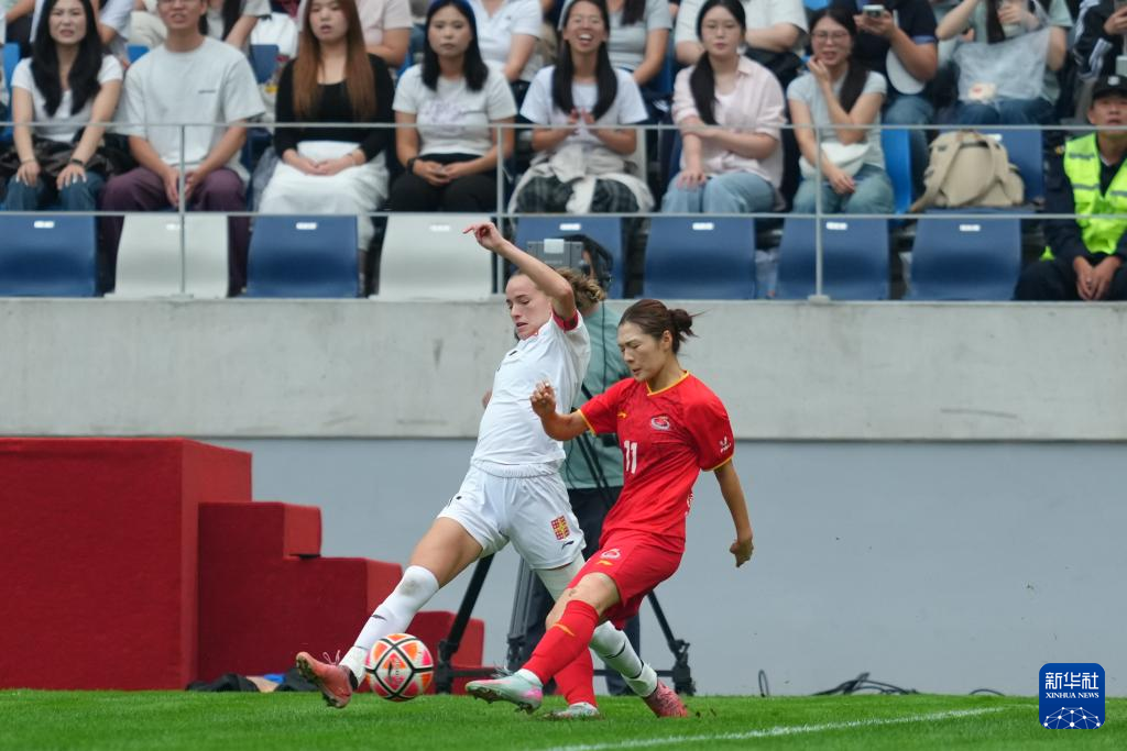 9月27日,观众为上海体育大学女足球员加油助威。新华社记者 李钢 摄