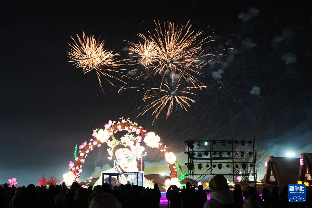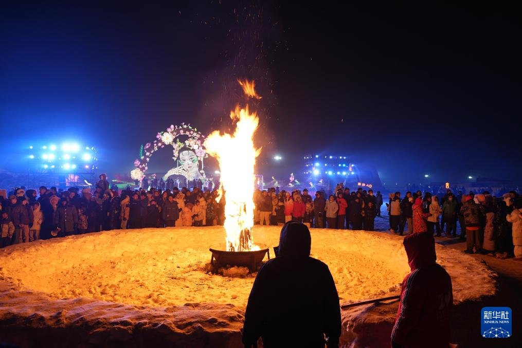 1月12日在沈阳市沈北新区的稻梦小镇拍摄的篝火演出。