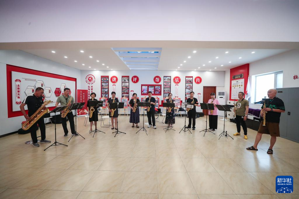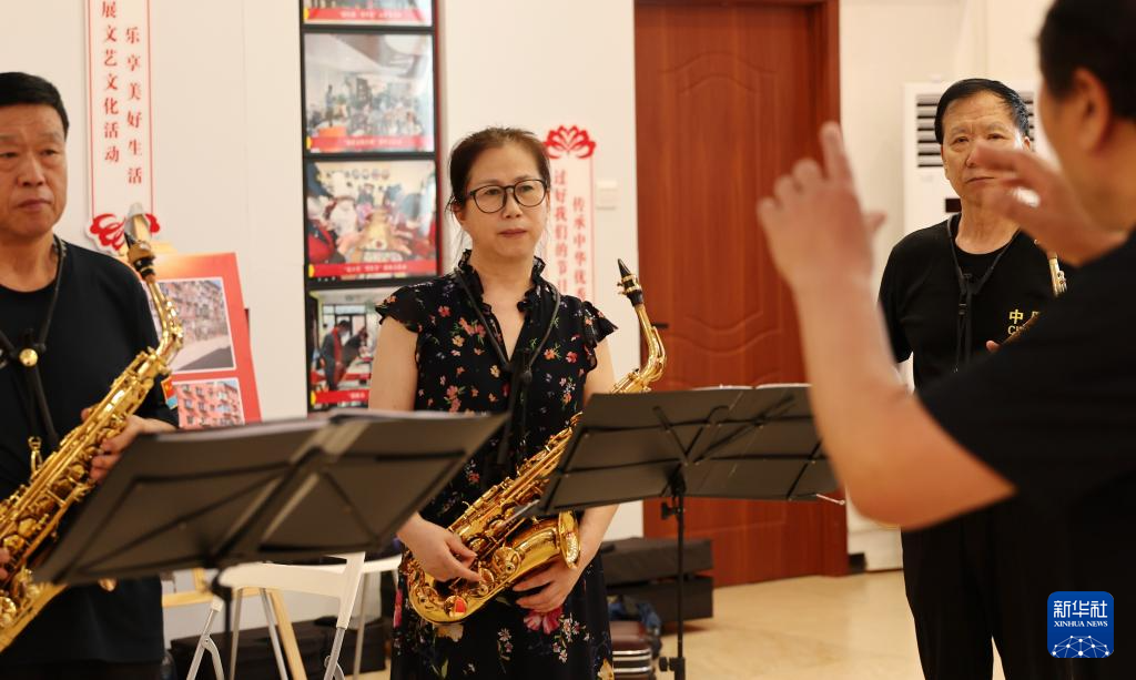 6月21日,居民在沈阳市牡丹社区党群服务中心练习乐器。新华社记者 龙雷 摄