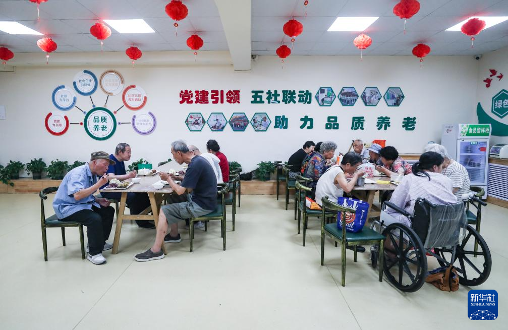 6月21日,居民在沈阳市牡丹社区党群服务中心吃午饭。新华社记者 龙雷 摄