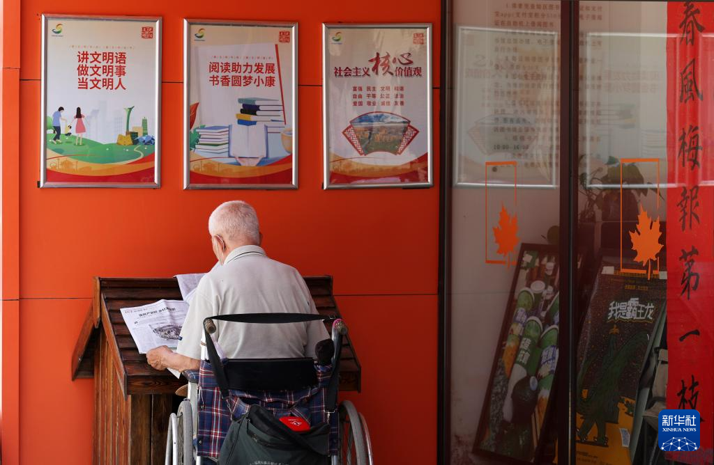 6月21日,在沈阳市皇姑区的牡丹社区,老人翻阅报纸。新华社记者 龙雷 摄