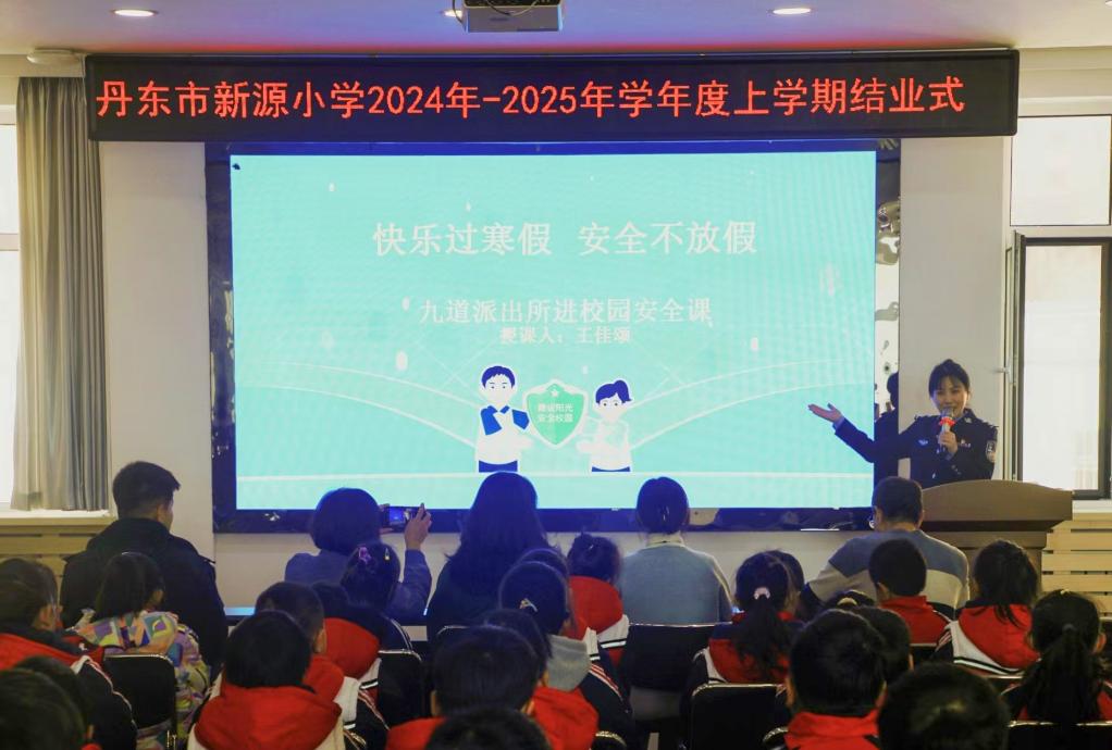 1月6日,丹东市公安局元宝分局九道派出所民警王佳颂在丹东市新源小学为学生讲授安全教育课。