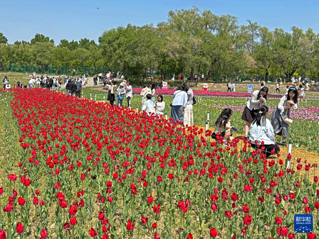 5月11日,市民在沈阳市北陵公园赏花。