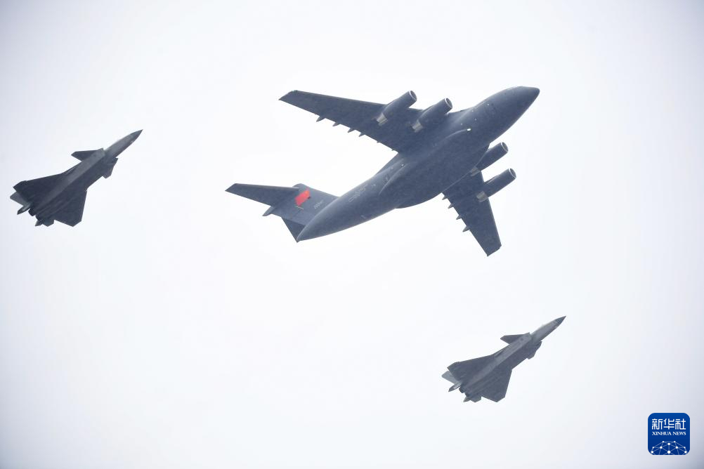 11月23日,空军歼-20飞机为护送烈士遗骸回国的运-20专机护航。新华社发(黄灿 摄)pagebreak