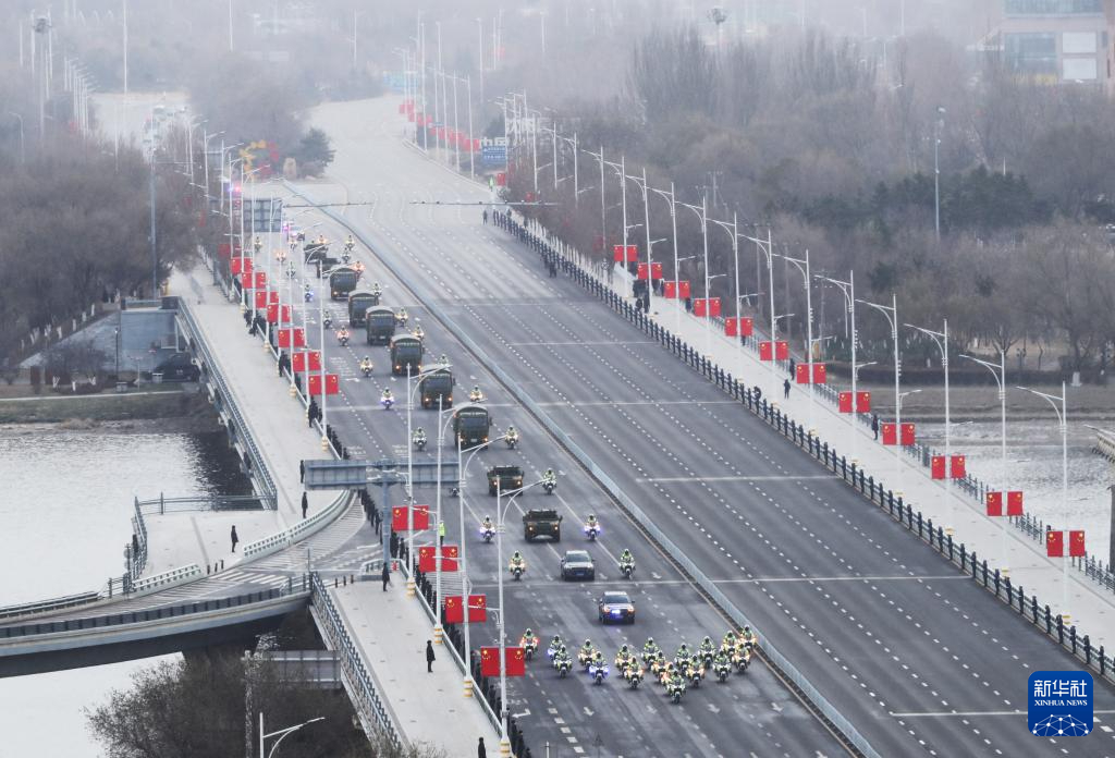 11月23日,运送志愿军烈士遗骸的车队经过沈阳青年大街。新华社记者 李钢 摄pagebreak