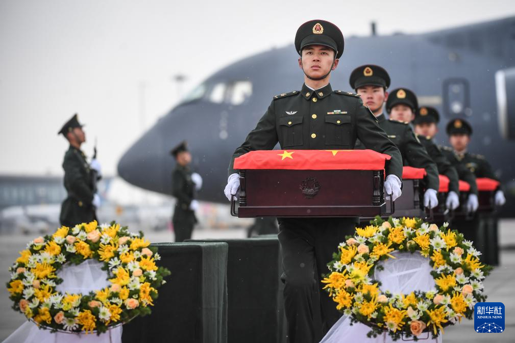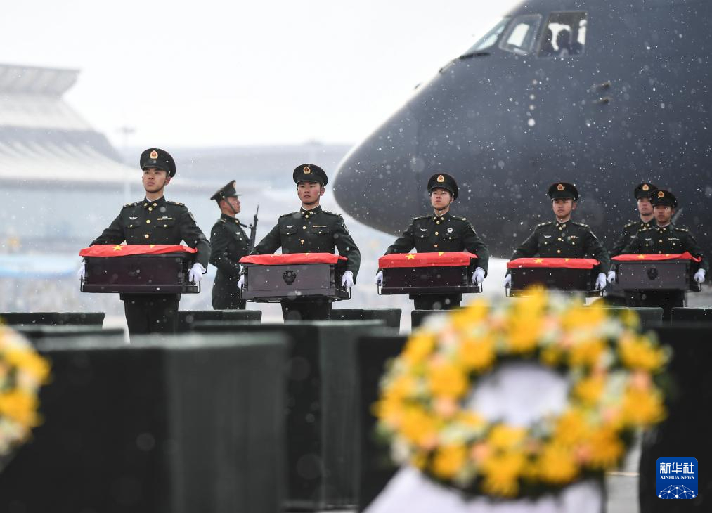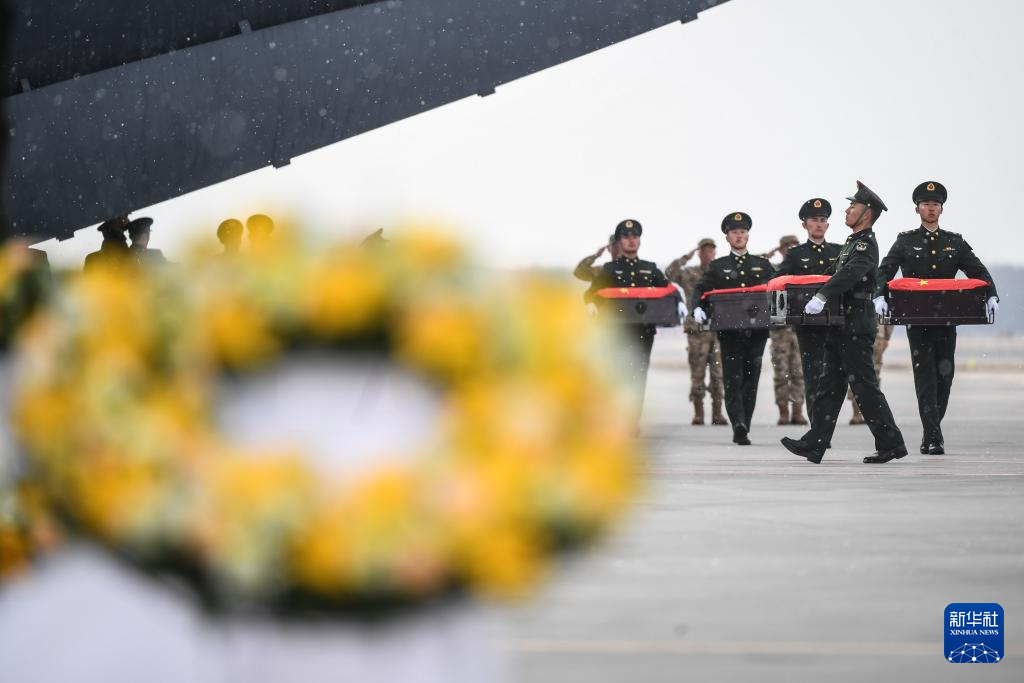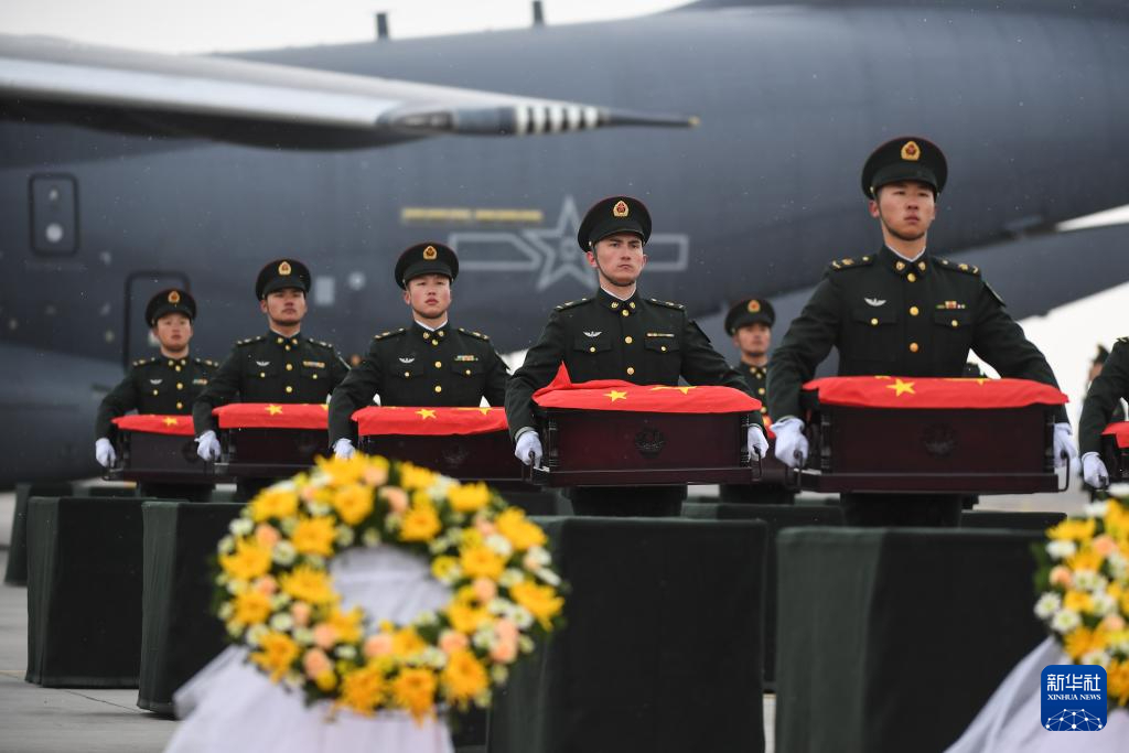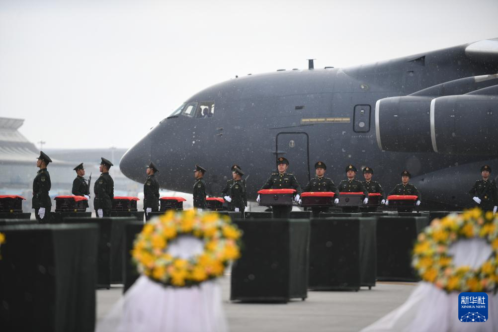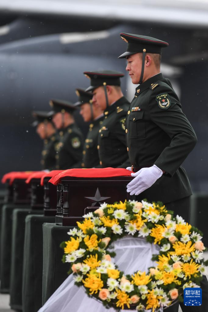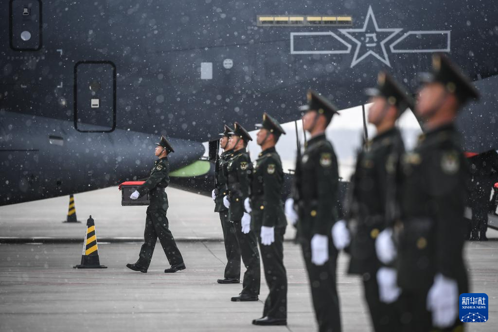 当日,第十批在韩中国人民志愿军烈士遗骸由我空军专机护送从韩国接回辽宁沈阳,25位志愿军烈士遗骸及相关遗物回到祖国。pagebreak