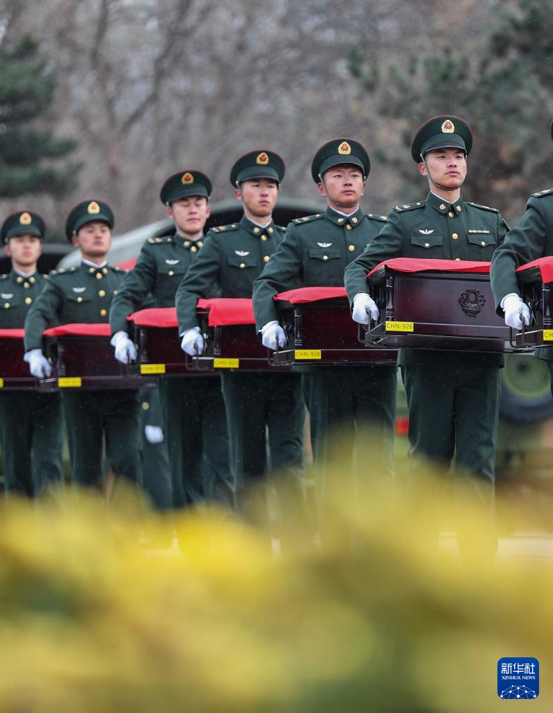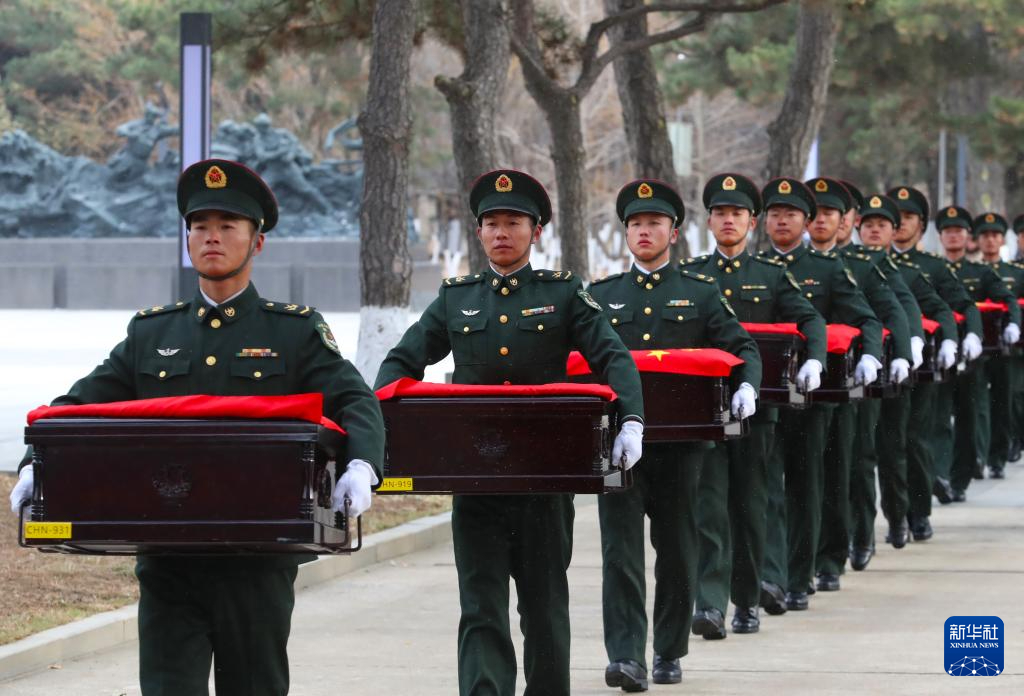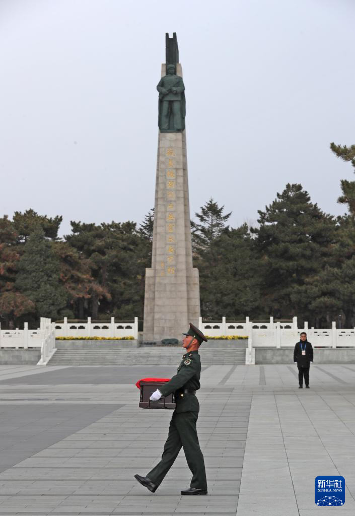 11月23日,志愿军烈士遗骸抵达沈阳抗美援朝烈士陵园。新华社记者 杨青 摄