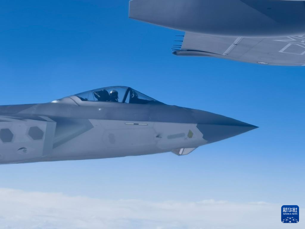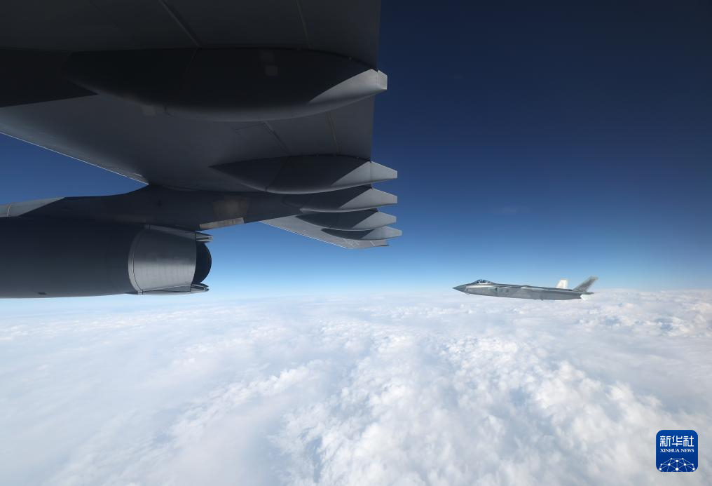 11月23日,空军歼-20飞机为护送烈士遗骸回国的运-20专机护航。新华社记者 曹灿 摄pagebreak