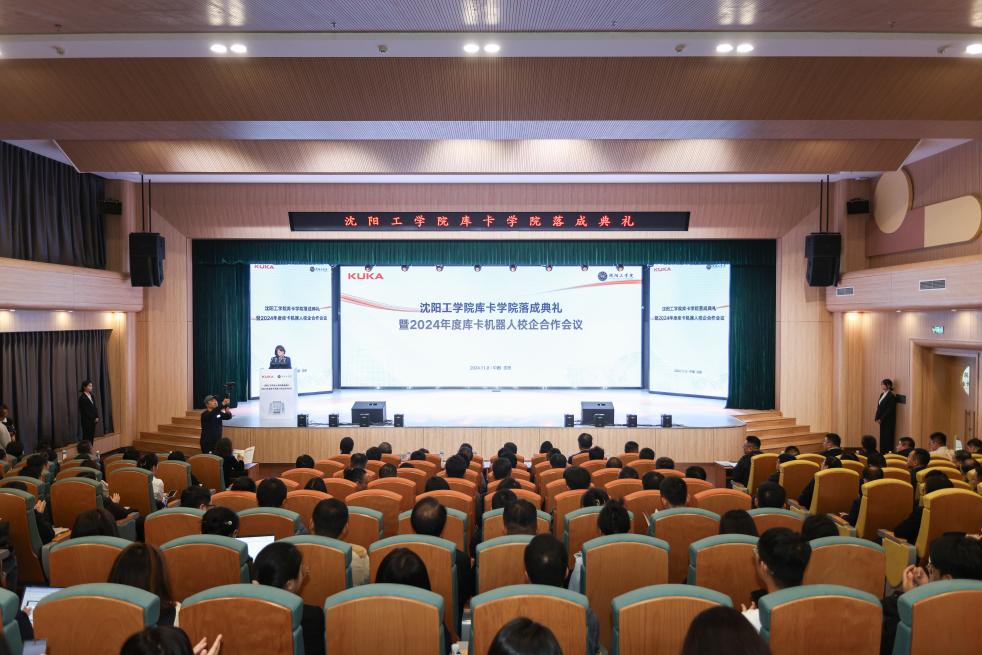 此次校企共建的库卡学院总面积8000余平方米,设备投入分为库卡标准培训模块、学习型工厂模块和工业仿真与数字孪生模块。学校引进库卡中国的先进设备和技术,将数字化企业搬到校内,给学生提供与行业标准、企业需求精准对接的高水平实践教学平台。同时,库卡中国派出掌握先进技术的工程师团队定期为学生授课,学生们可以在库卡学院里接触到最先进的机器人技术和智能制造系统,通过实践操作提升实践应用能力。同时,学院还引进了库卡中国的生态伙伴企业,进一步推进产教融合,提升教师教学水平,为学生提供实习、就业岗位,实现高质量就业。沈阳工学院早在2019年便与库卡中国开展校企合作,目前已有30名学生在库卡公司工作,首批学生已经成为库卡技术骨干。校企双方协同育人,实现产业链、创新链、人才链有机衔接,使人才培养与产业结构、社会需求高度契合,树立了校企合作新标杆,助力新质生产力发展。