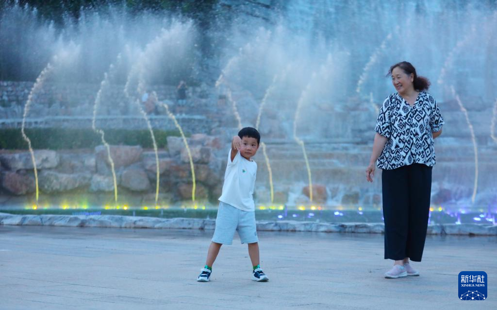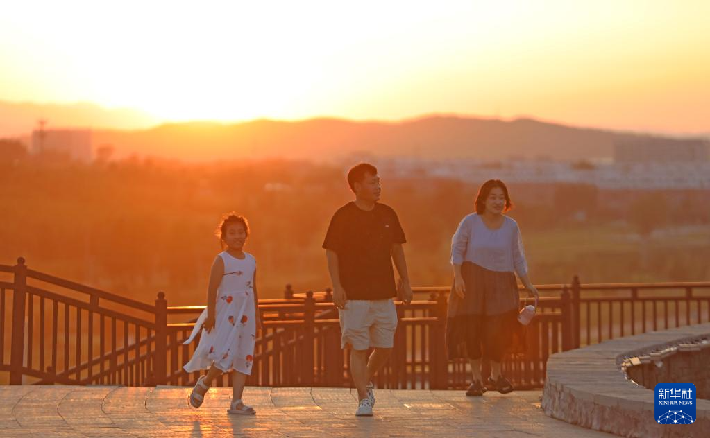8月8日,市民在北票市山体公园休闲游玩。 新华社记者 杨青 摄