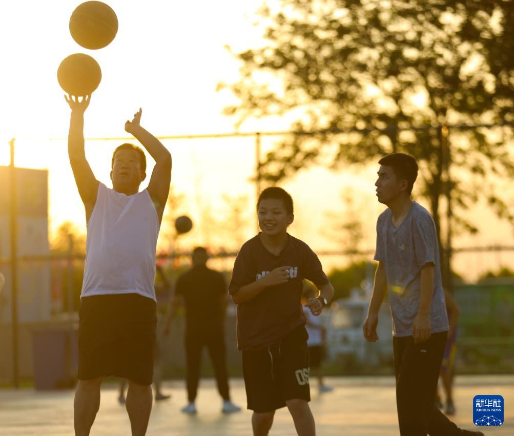 8月8日,市民在北票市山体公园篮球场运动。新华社记者 杨青 摄