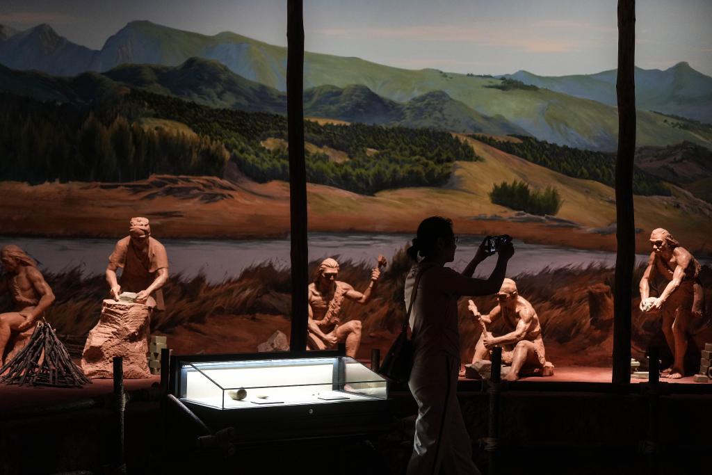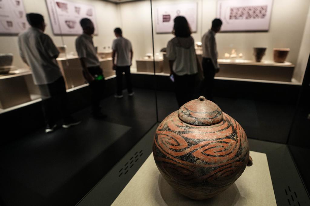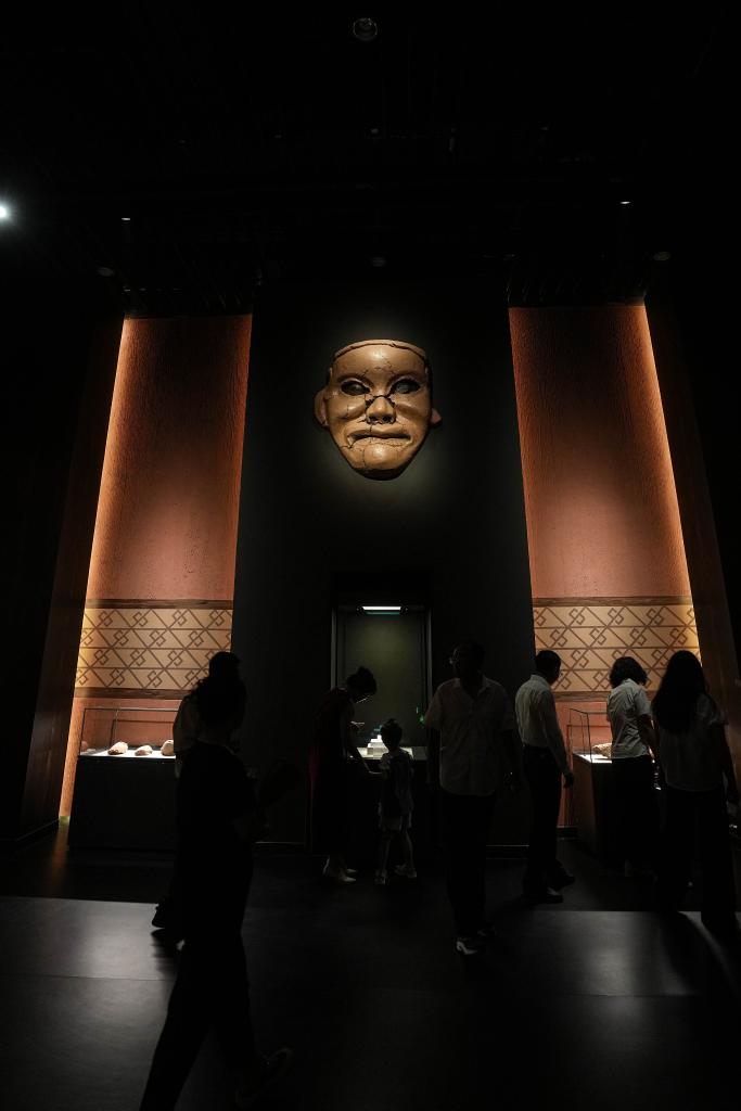 2024年8月3日,参观者在牛河梁遗址博物馆内观展。