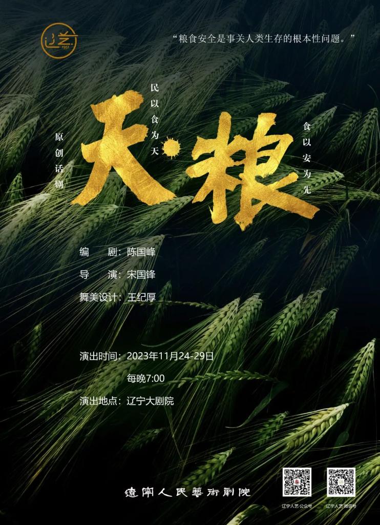 辽宁人民艺术剧院,在全国话剧舞台有重要的影响力,是关东演剧学派的代表。剧院创作排演的话剧,曾多次获得“五个一工程”奖“文华大奖”“曹禺戏剧金奖”“中国艺术节大奖”等。话剧《天·粮》编剧陈国峰、导演宋国锋、舞美设计王纪厚、灯光设计关中奎都是辽艺人,都在各自领域取得过瞩目的成绩。演员团队更是涵盖了辽艺的老、中、青三代人,整个制作班底百分之百是辽艺人,是一部真正体现辽宁人民艺术剧院艺术水准的剧目。