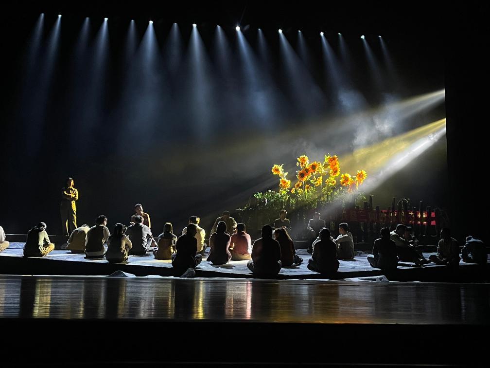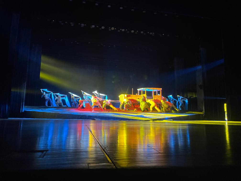 “民以食为天!粮食就是天!天!天!天!”姚居德说着,高高举起双手,抬头仰望,动情地说着这段台词,其他演员看向他,目光里饱含着投身国家建设的迫切期待……每一句台词,每一个眼神都精心打磨,全情投入让排练变成了一场正式的演出。