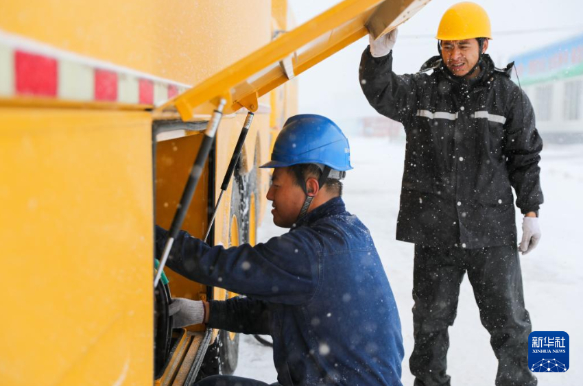 6日,国网长春供电公司工作人员在雪中保障供电。新华社记者颜麟蕴 摄